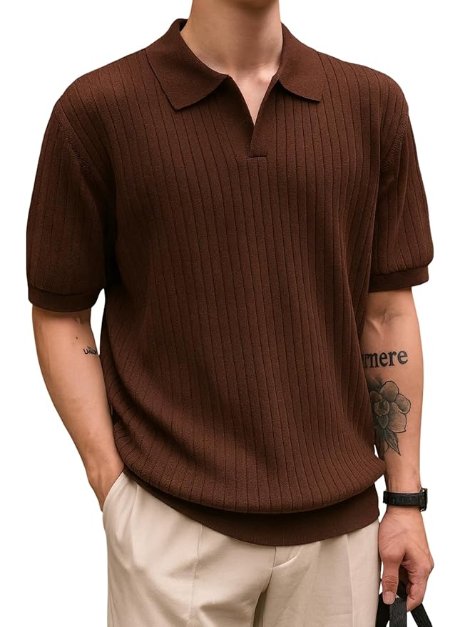 Men’s Casual Ribbed Polo Collar Knit T-Shirt | Regular Fit Half Sleeve Polo for Men | Flat Knit Textured T-Shirt Perfect for Office, Party, Travel